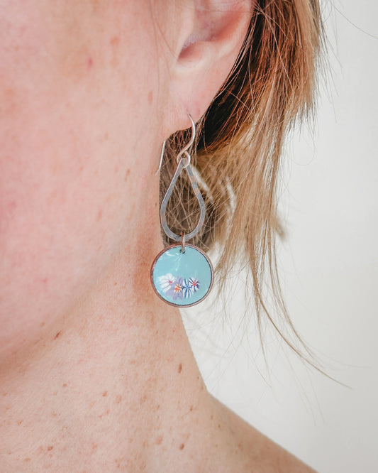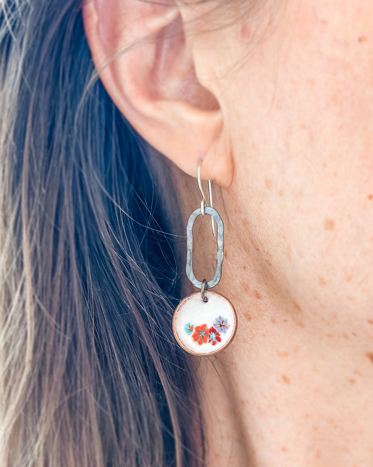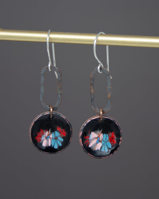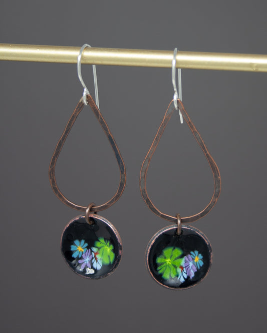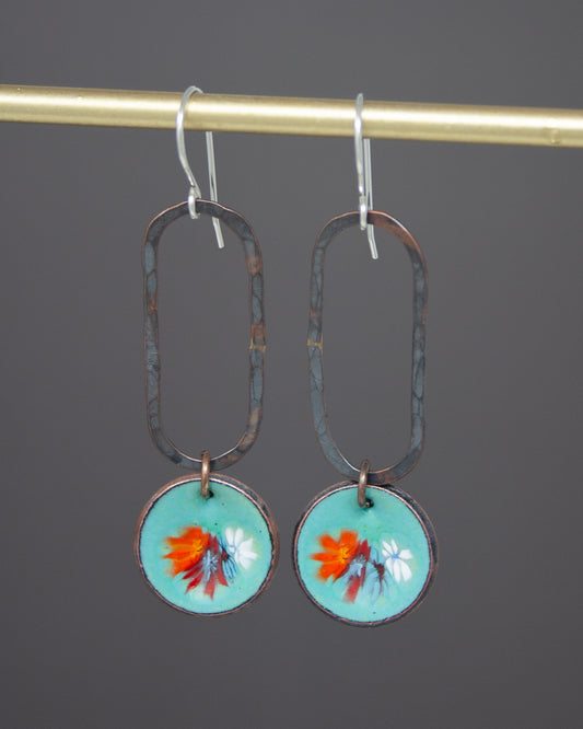 Fiora Penny Earrings – Handmade Copper Hoop Earrings With Flower Enamel Design