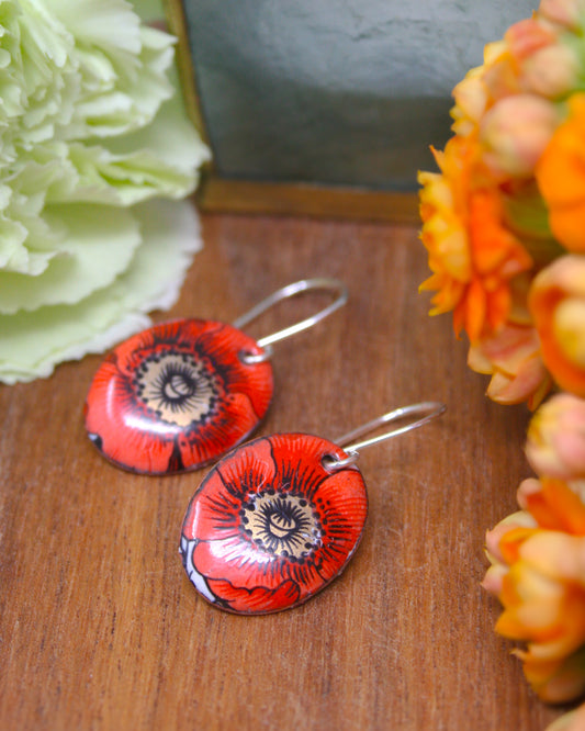 Poppy Earrings – August Birthday Flower.