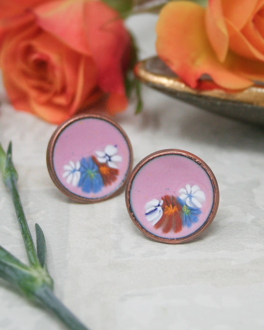 Fiora Penny Post Earrings – Handmade Stud Earrings With Flower Enamel Design