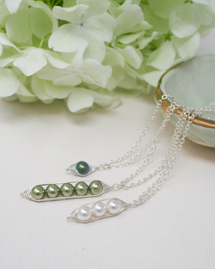 Personalized birthstone Pea pod necklace with Crystals [made to order]