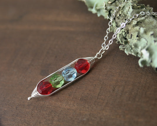 Personalized birthstone Pea pod necklace with Crystals [made to order]