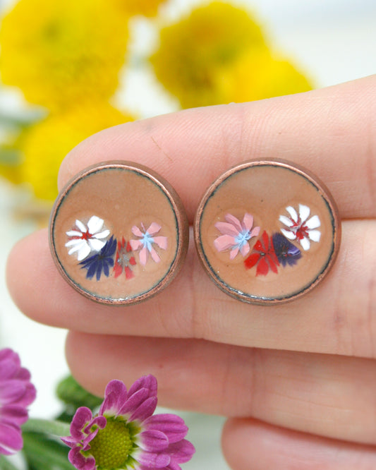 Fiora Penny Post Earrings – Handmade Stud Earrings With Flower Enamel Design