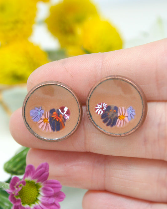 Fiora Penny Post Earrings – Handmade Stud Earrings With Flower Enamel Design