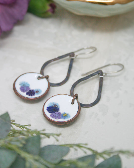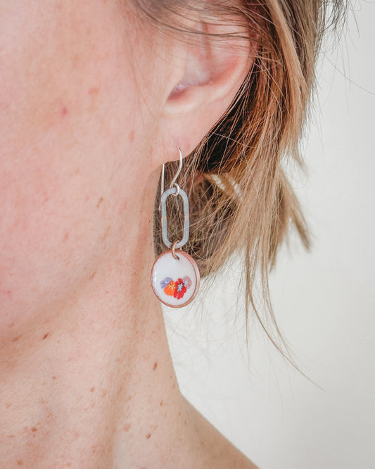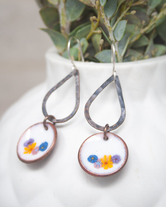 Fiora Penny Earrings – Handmade Copper Hoop Earrings With Flower Enamel Design