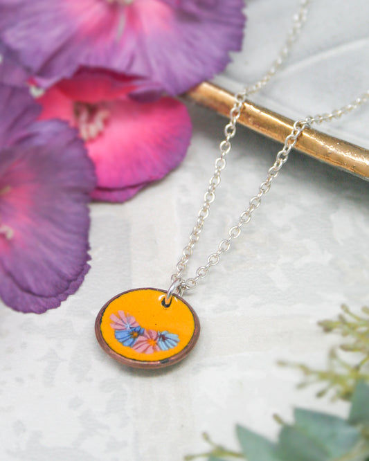 Fiora Penny Pendant Necklace – Handmade Charm Necklace With Flower Enamel Design
