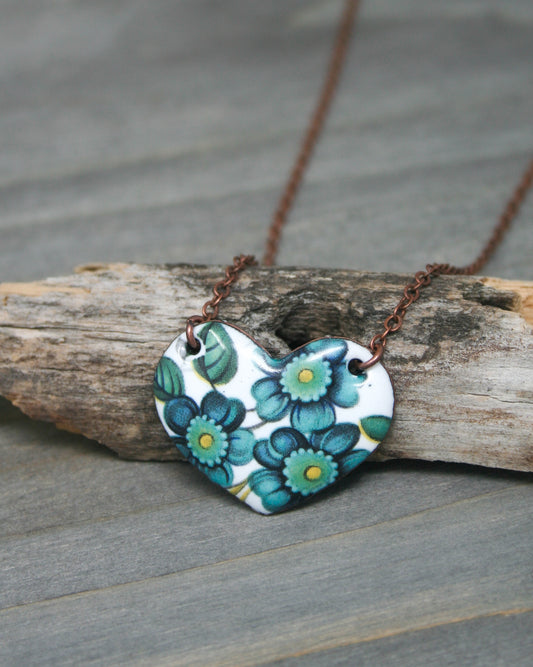 Love Wins Teal Bloom Large Heart Necklace [ready to ship]