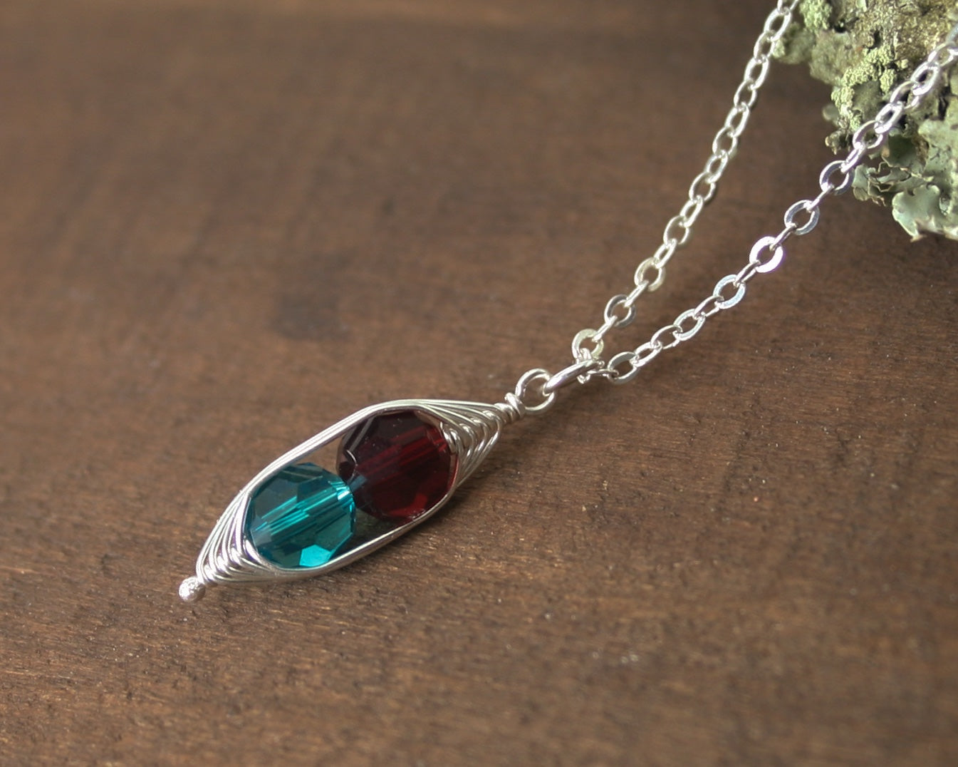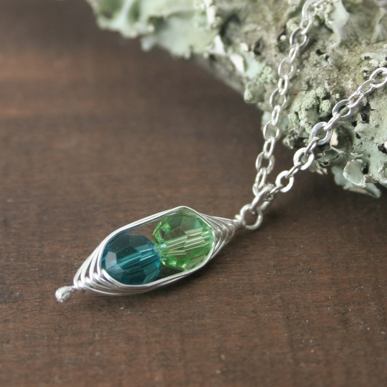 - Custom-made necklace with crystal "peas" in birthstone colors
