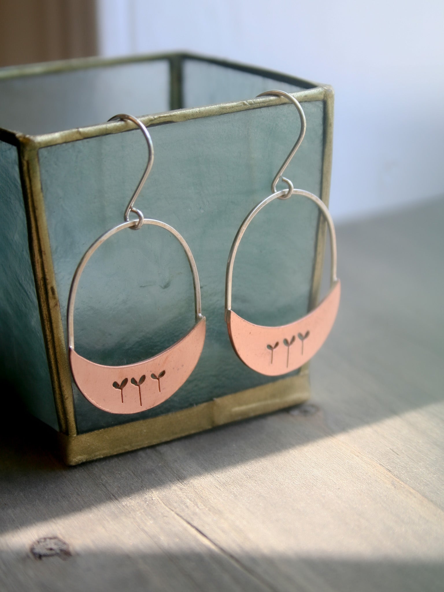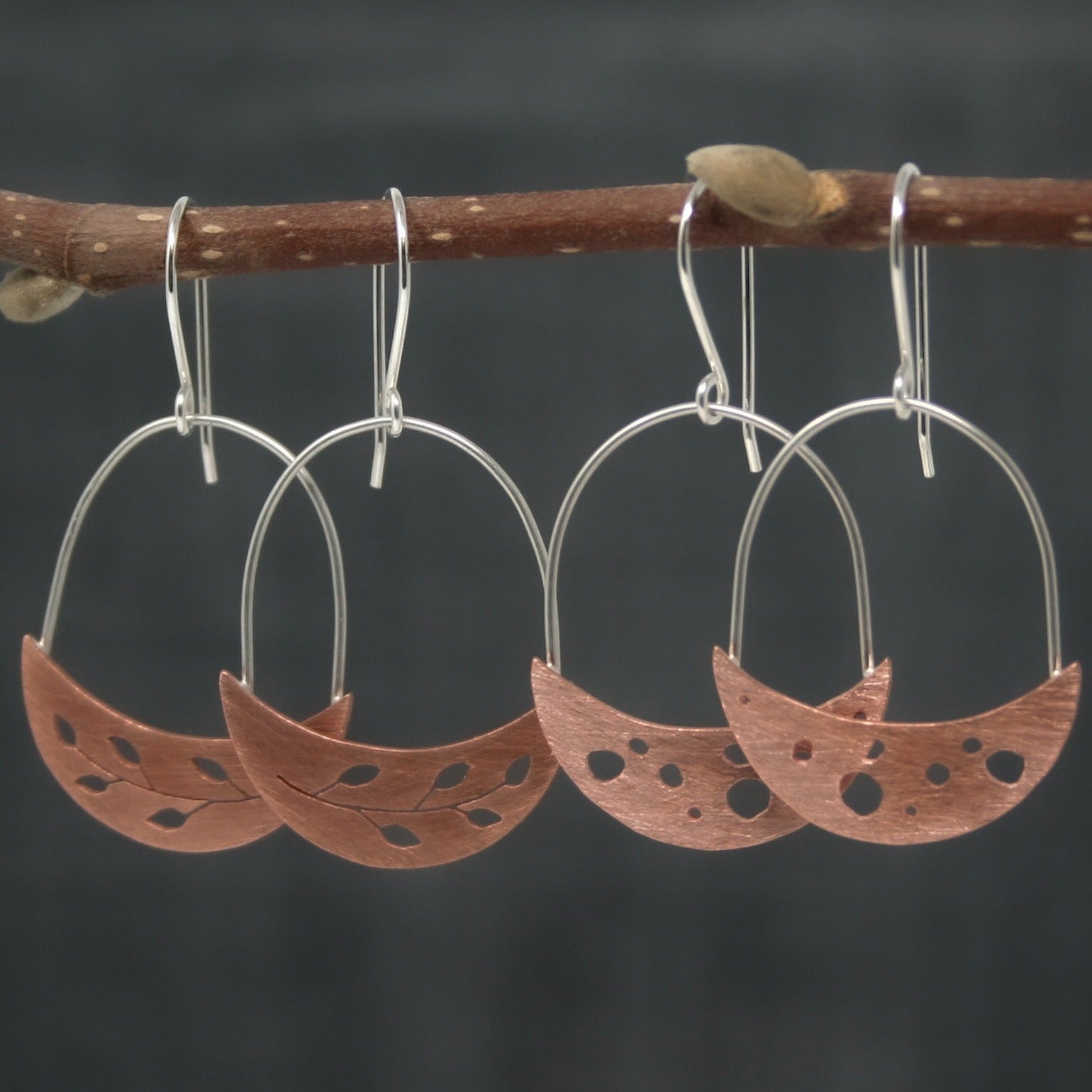 Connect to nature with our copper earrings with sterling accents. Each pair features hand-cut botanical shapes that are uniquely free-form, making them truly one-of-a-kind.