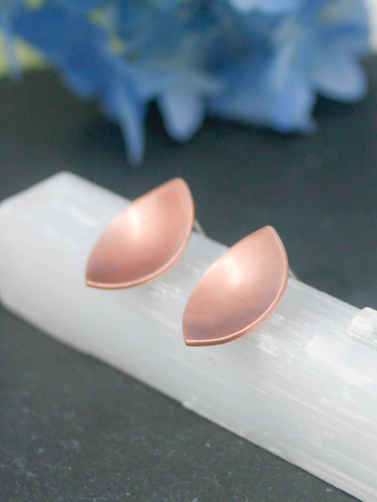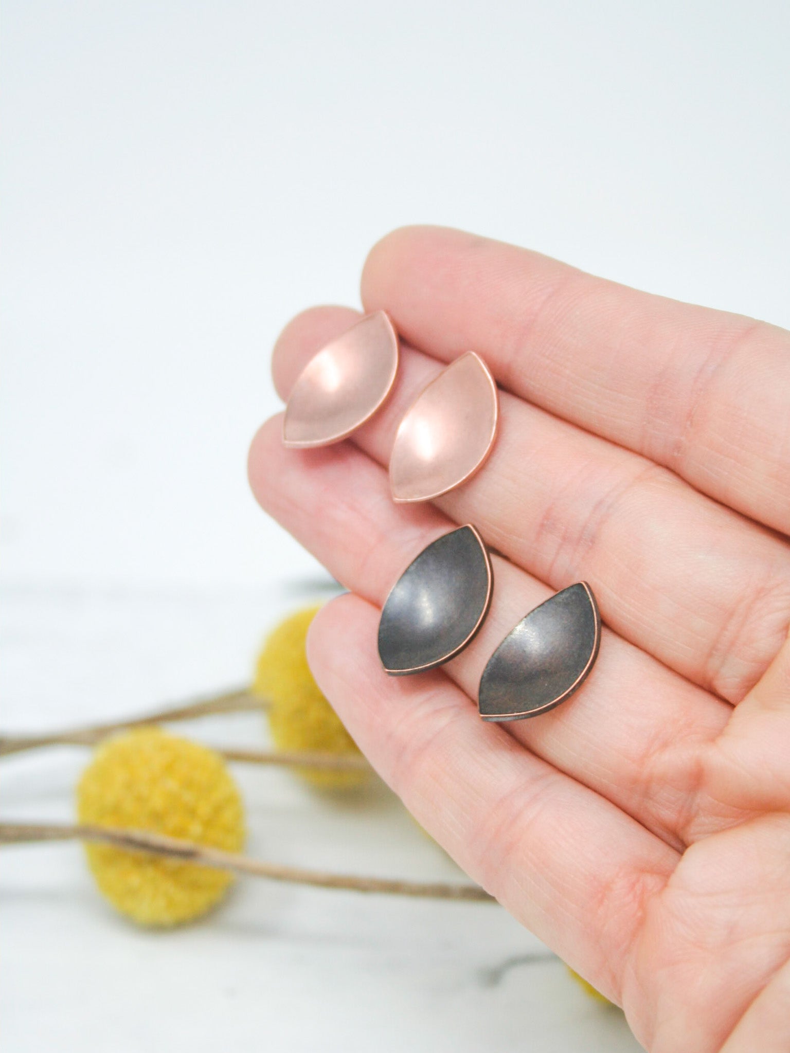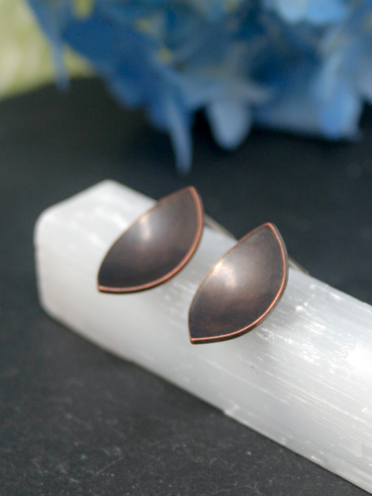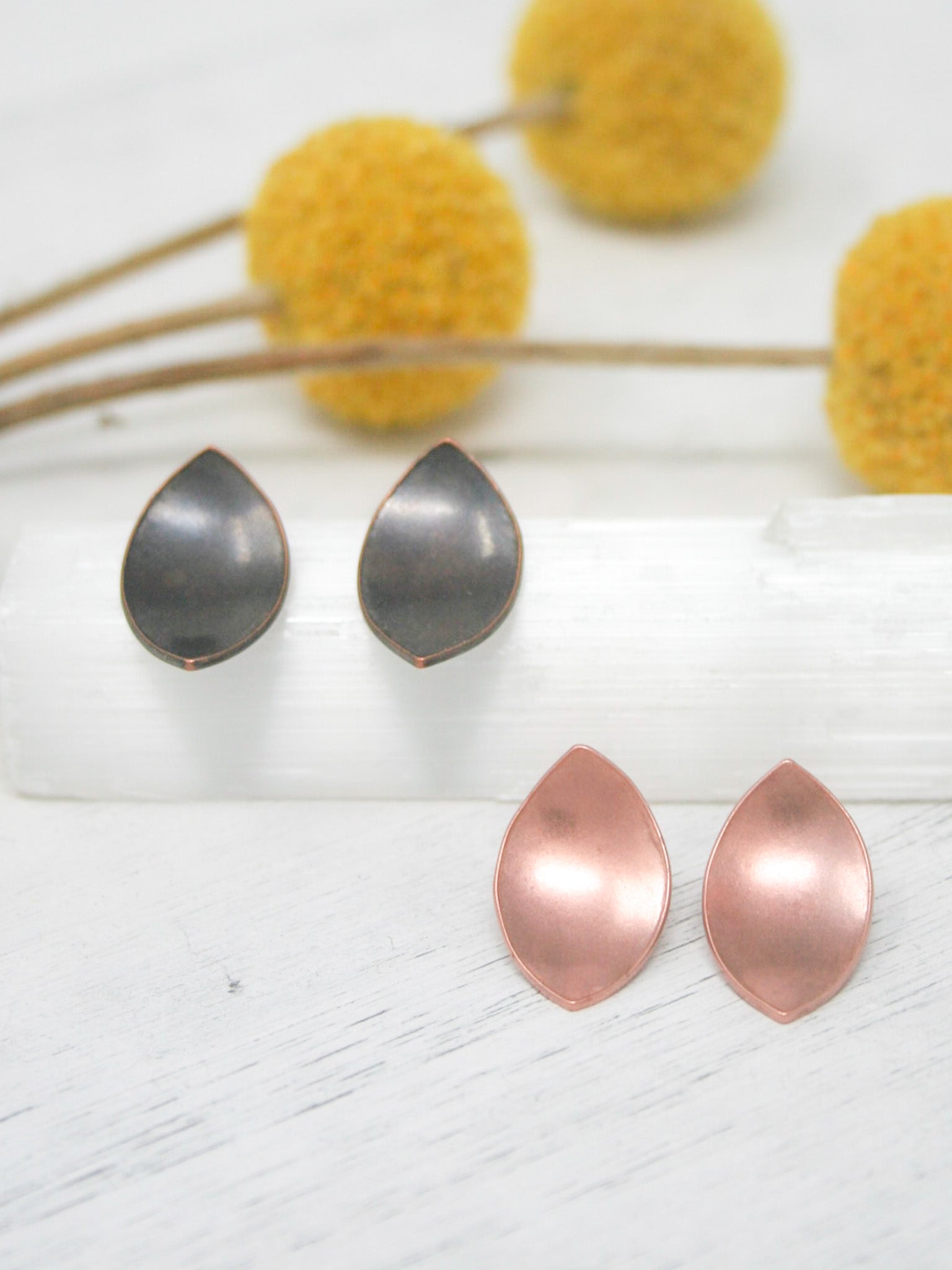 These Large Basic Petal Stud Earrings are the perfect addition to your jewelry collection. Handmade with care, these earrings feature a curved petal shape that adds a touch of elegance to any outfit. Available in both a dark patina or clean copper finish, these earrings are super versatile and can be worn with any style.
