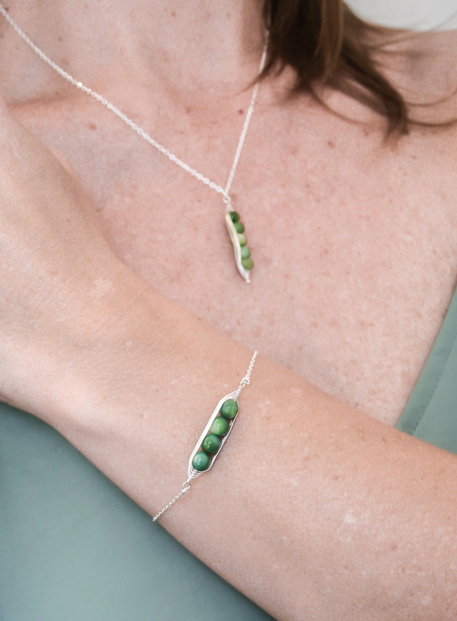 Four peas in a pod peas in a pod jewelry is a great way to celebrate those closest to you. Whether your best friends, siblings, kids, quadruplets family, or grand kids - This 4 peas in a pod bracelet is a beautiful representation of the unique bond that connects four people.