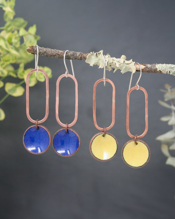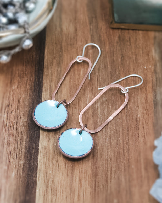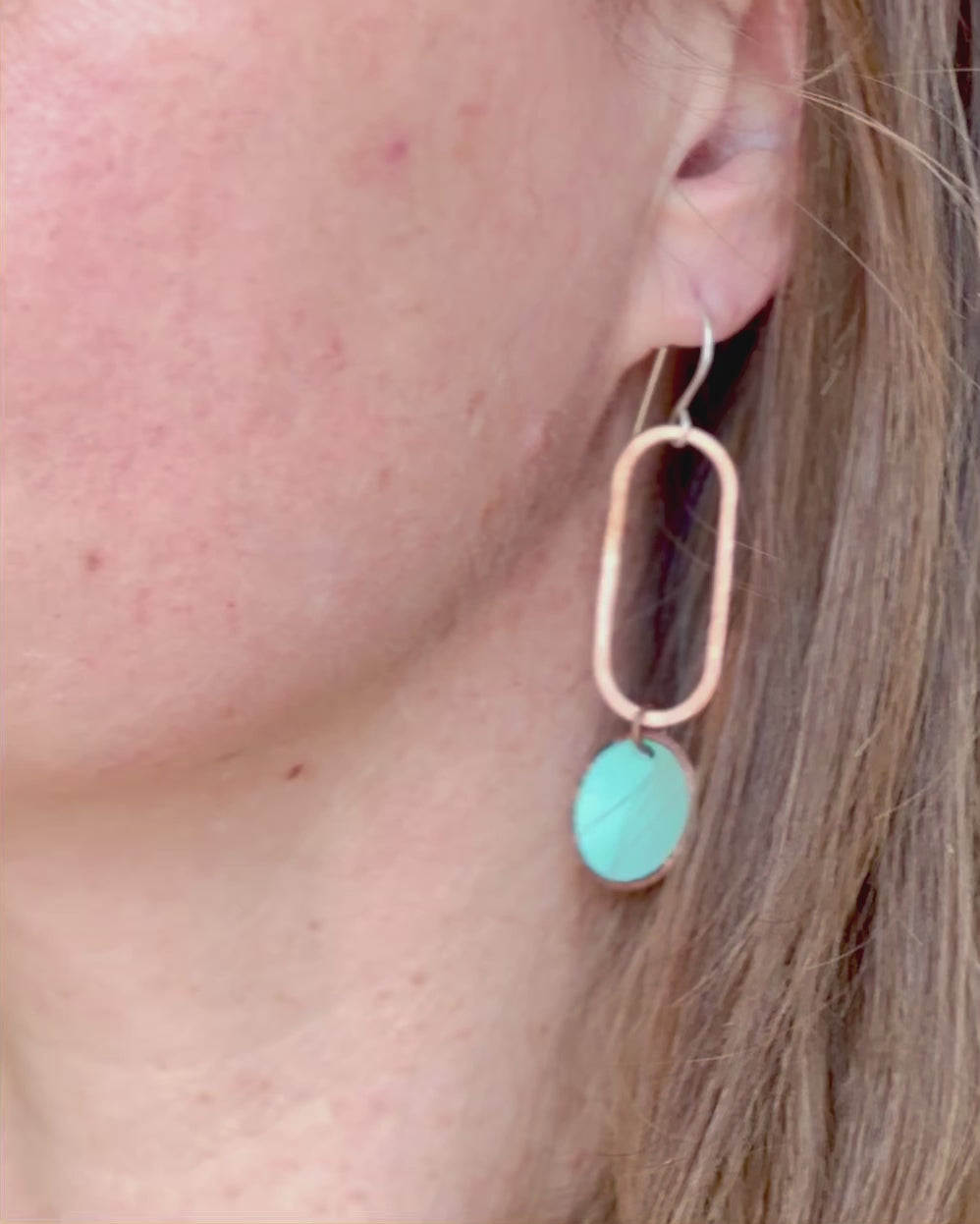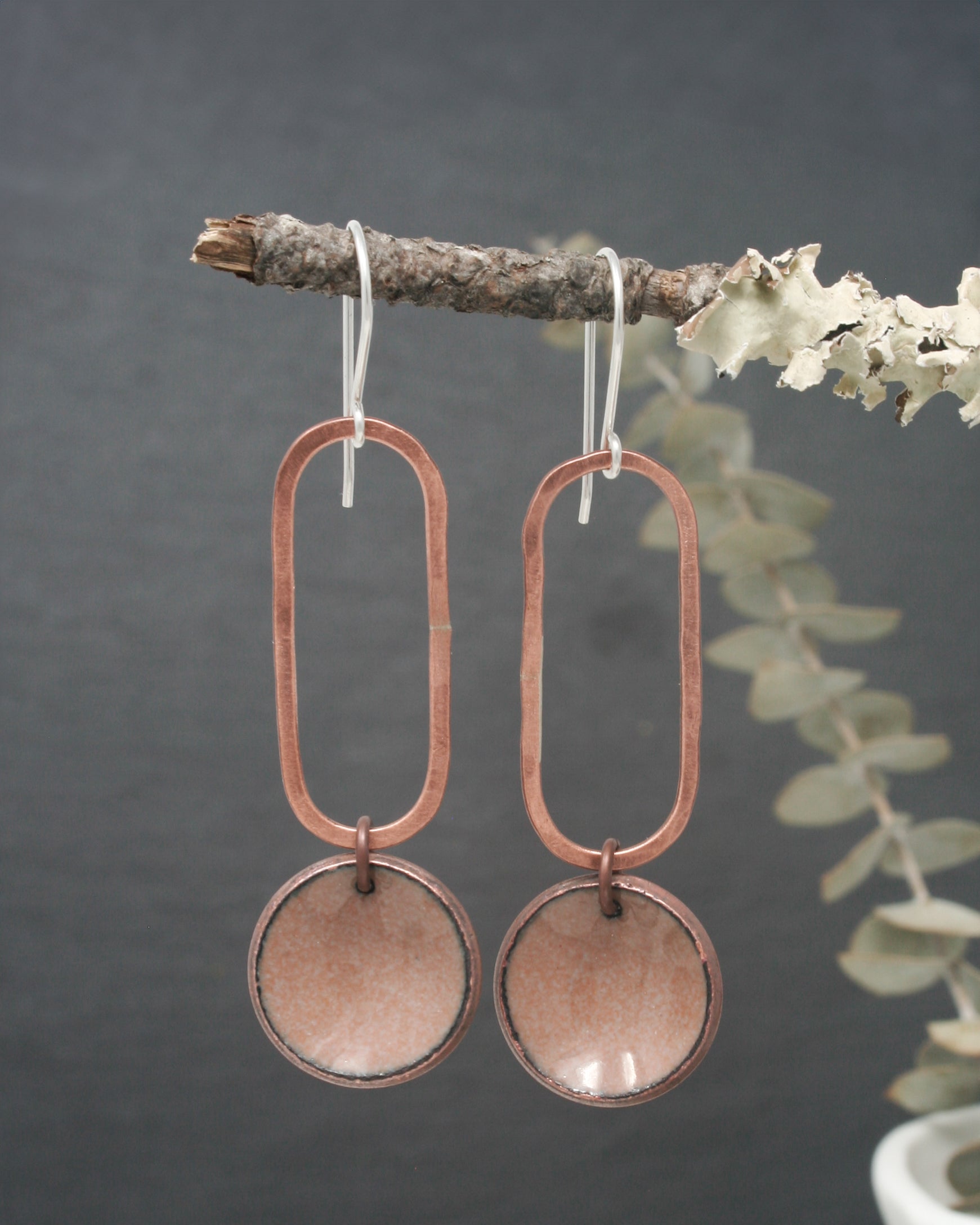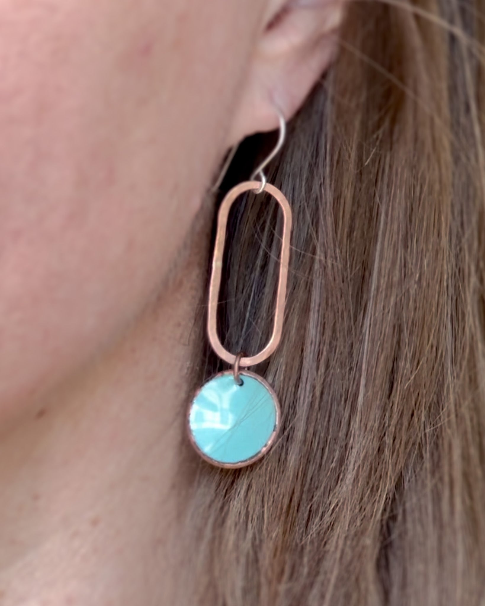 Complement your look with these copper penny elongate earrings. Handcrafted with real copper pennies, these eye-catching earrings will add a touch of chic style to your wardrobe. Finished with sterling silver hooks.