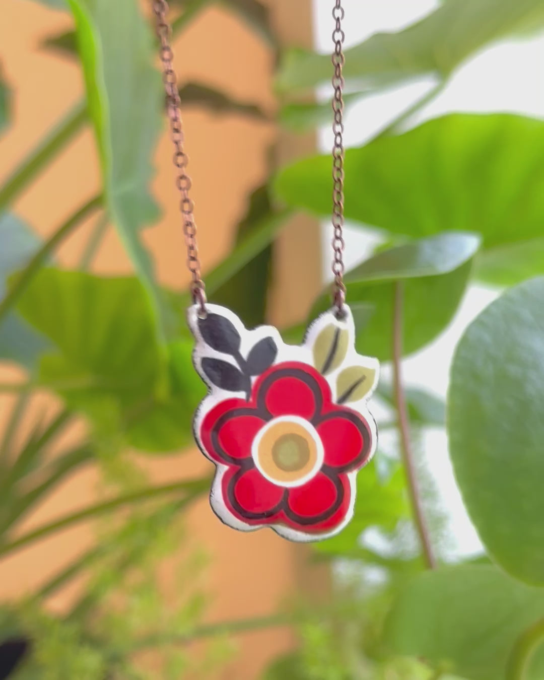 The Retro Red Necklace is all about bold, vintage fun. The striking red floral pattern makes this piece stand out, perfect for anyone who loves a bit of retro flair. It’s the kind of necklace that instantly adds personality to whatever you’re wearing. Made in small batches, it’s as lively and unique as the era that inspired it. Matching earrings are available if you want to double up on the retro vibes.