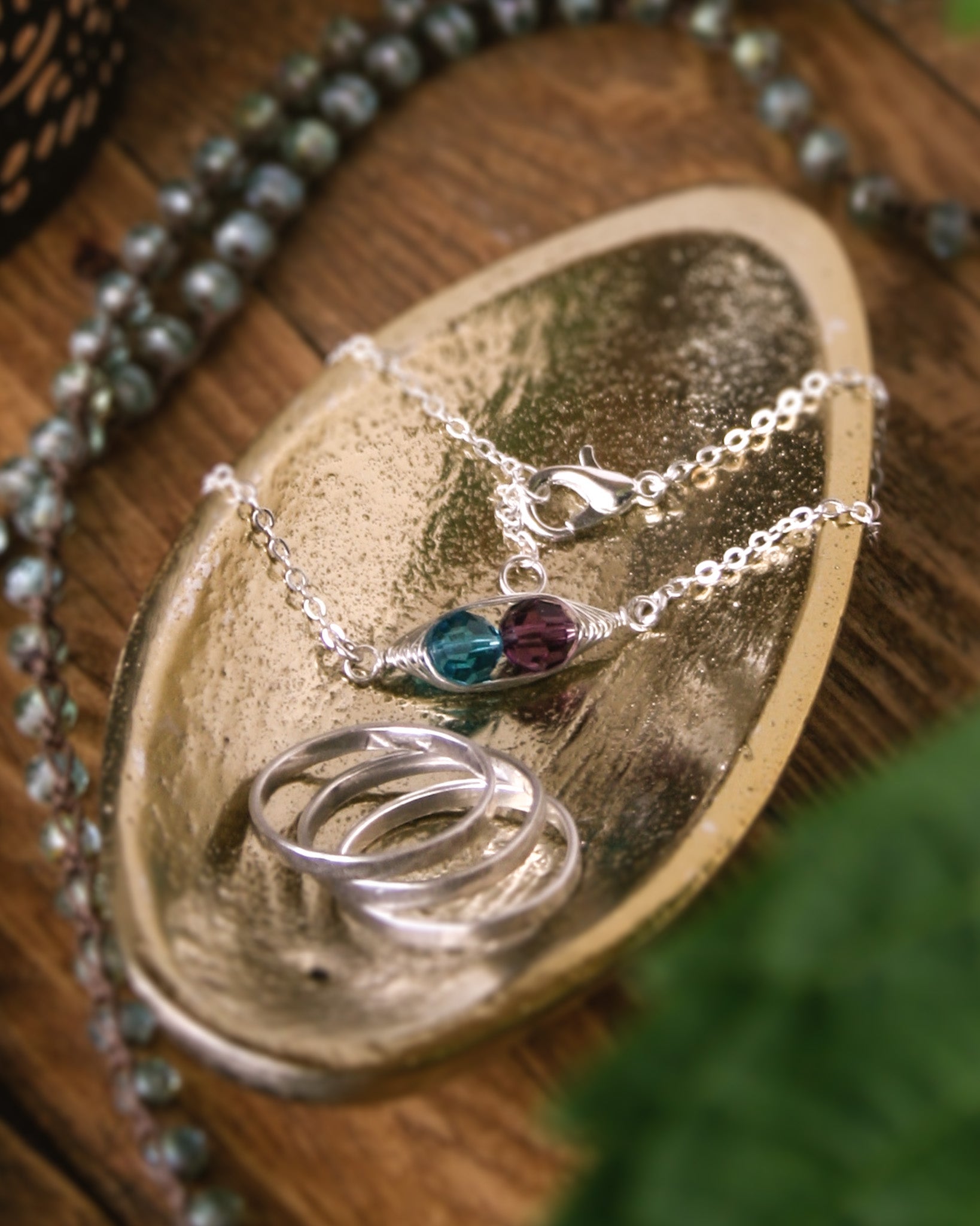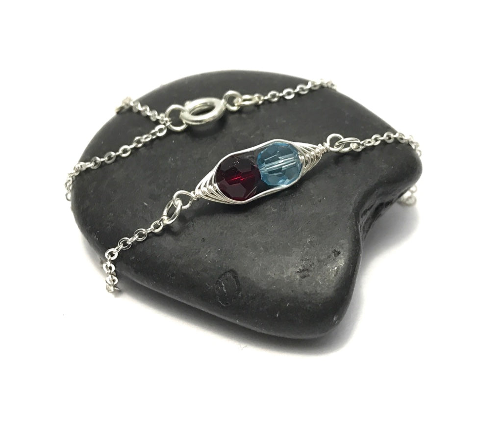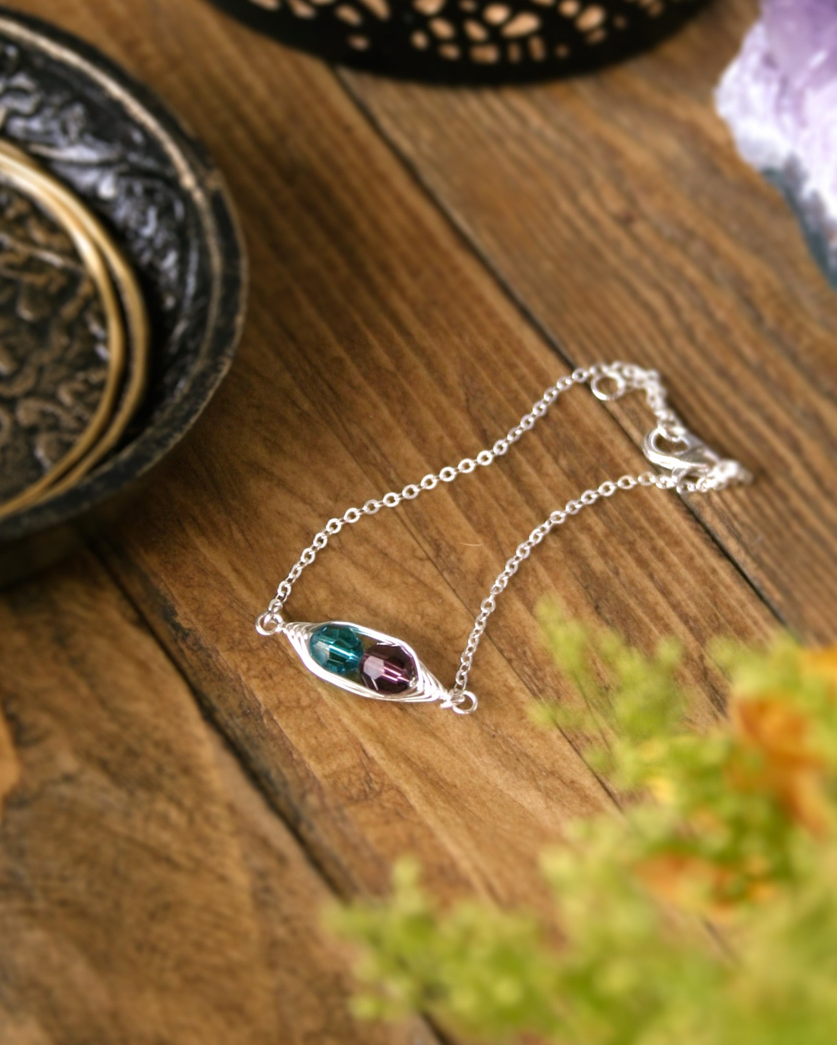 - Custom-made bracelet with crystal "peas" in birthstone colors