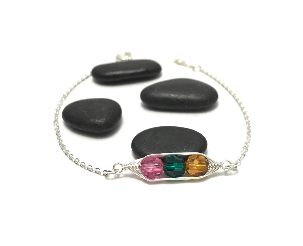 A thoughtful gift for your mom, a new mom, sister, grandma, or a friend who has a birthday coming up? Look no further than our pea pod jewelry birthstone bracelet! This bracelet is perfect for everyday and occasions.