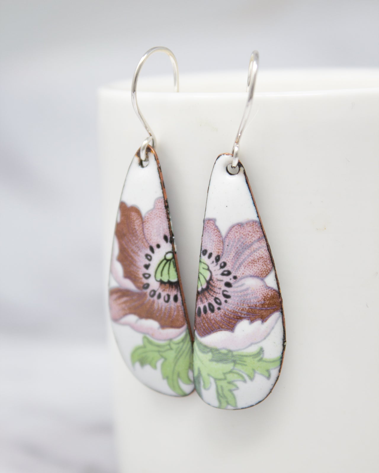 These Purple Poppy Drops are all about understated elegance. The soft purple tones of the floral design give these earrings a quiet beauty that’s perfect for when you want to wear something special but not too bold. They’re a part of the Vintage Revival collection that celebrates the beauty of subtlety and the timeless appeal of floral patterns. Made in small batches with vintage charm.